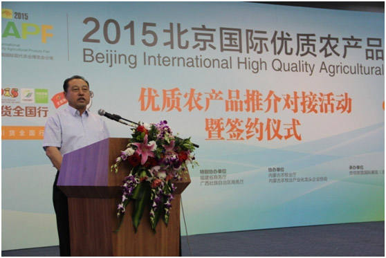 在優(yōu)質(zhì)農(nóng)產(chǎn)品推介對(duì)接活動(dòng)暨簽約儀式上,內(nèi)蒙古農(nóng)牧業(yè)產(chǎn)業(yè)化龍頭企業(yè)協(xié)會(huì)執(zhí)行會(huì)長(zhǎng)林永亮向與會(huì)人員介紹了內(nèi)蒙古獨(dú)特的地域文化及內(nèi)蒙古優(yōu)質(zhì)綠色農(nóng)畜產(chǎn)品,林會(huì)長(zhǎng)指出,得天獨(dú)厚的資源優(yōu)勢(shì)孕育了內(nèi)蒙古優(yōu)質(zhì)綠色無(wú)污染的農(nóng)畜產(chǎn)品,內(nèi)蒙古優(yōu)質(zhì)無(wú)污染的農(nóng)畜產(chǎn)品進(jìn)駐北京精品館,必將為北京市民帶來(lái)純正的來(lái)自內(nèi)蒙古大草原的美味。林會(huì)長(zhǎng)表示,本次會(huì)議的主要目的就是帶領(lǐng)內(nèi)蒙古優(yōu)秀農(nóng)牧業(yè)產(chǎn)業(yè)化龍頭企業(yè),形成聯(lián)合艦隊(duì),打組合拳,打造內(nèi)蒙古的品牌,讓北京市民深入的認(rèn)知和了解內(nèi)蒙古的產(chǎn)品。會(huì)上,林會(huì)長(zhǎng)還邀請(qǐng)與會(huì)人員參加包頭國(guó)際牛羊肉大會(huì)和內(nèi)蒙古第三屆綠博會(huì)。林會(huì)長(zhǎng)講話后,隨即就有沃爾瑪?shù)却笮蜕坛筒少?gòu)商與他聯(lián)系對(duì)接。