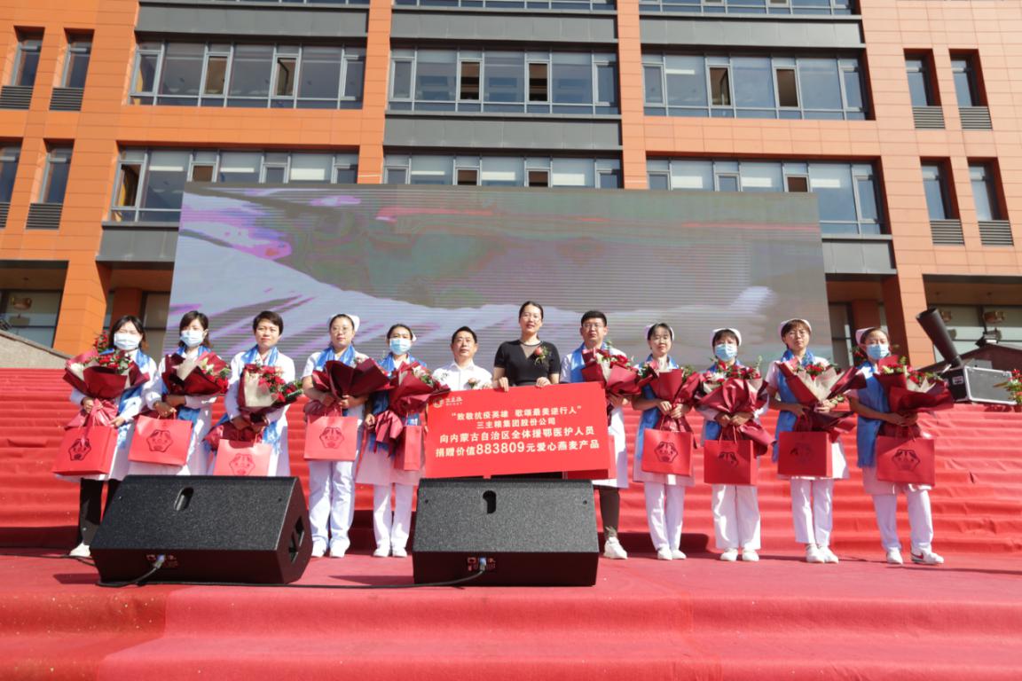 面對(duì)突如其來的疫情,無數(shù)醫(yī)護(hù)人員挺身而出,內(nèi)蒙古自治區(qū)共派出849名醫(yī)護(hù)人員參與援鄂行動(dòng),為了向抗疫英雄致敬,三主糧集團(tuán)在開幕式現(xiàn)場(chǎng)舉行了捐贈(zèng)儀式,向內(nèi)蒙古援鄂醫(yī)護(hù)人員捐贈(zèng)了價(jià)值88.3809萬元的三主糧燕麥產(chǎn)品。
