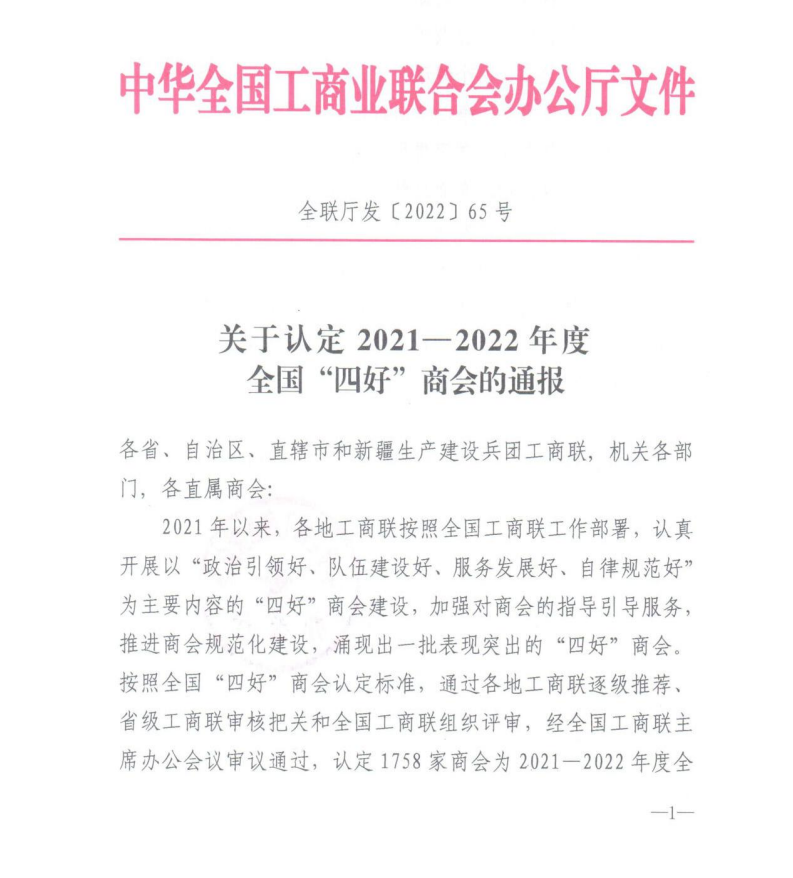 再次榮獲全國(guó)“四好”商會(huì)榮譽(yù)稱(chēng)號(hào)