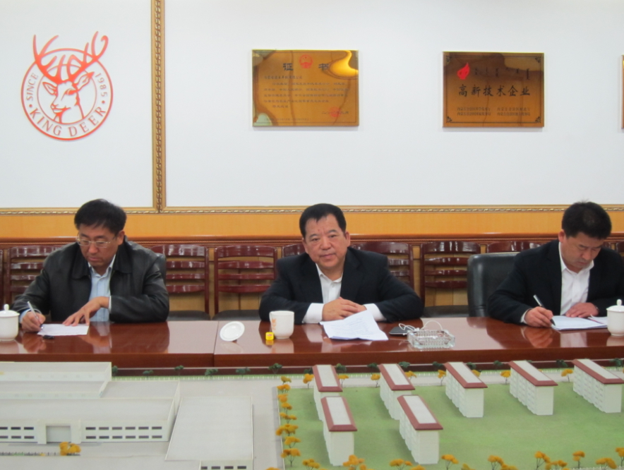 林永亮常務副會長、羊絨分會會長王風之、秘書長魯耀武在鹿王羊絨有限公司參加調(diào)研座談會