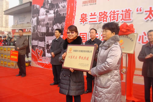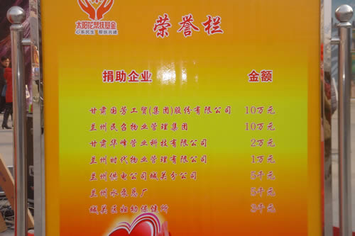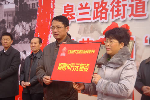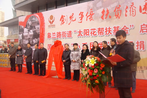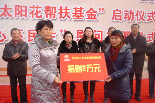 2012元月6日下午3時(shí),甘肅國芳集團(tuán)聯(lián)合城關(guān)區(qū)皋蘭路街道黨工委、辦事處舉行了“創(chuàng)先爭(zhēng)優(yōu)、扶貧濟(jì)困”太陽花幫扶基金啟動(dòng)儀式,充分體現(xiàn)民生為本的服務(wù)宗旨,著力搭建社會(huì)幫扶救助平臺(tái),切實(shí)解決弱勢(shì)群體實(shí)際困難,促進(jìn)和諧街道建設(shè)。