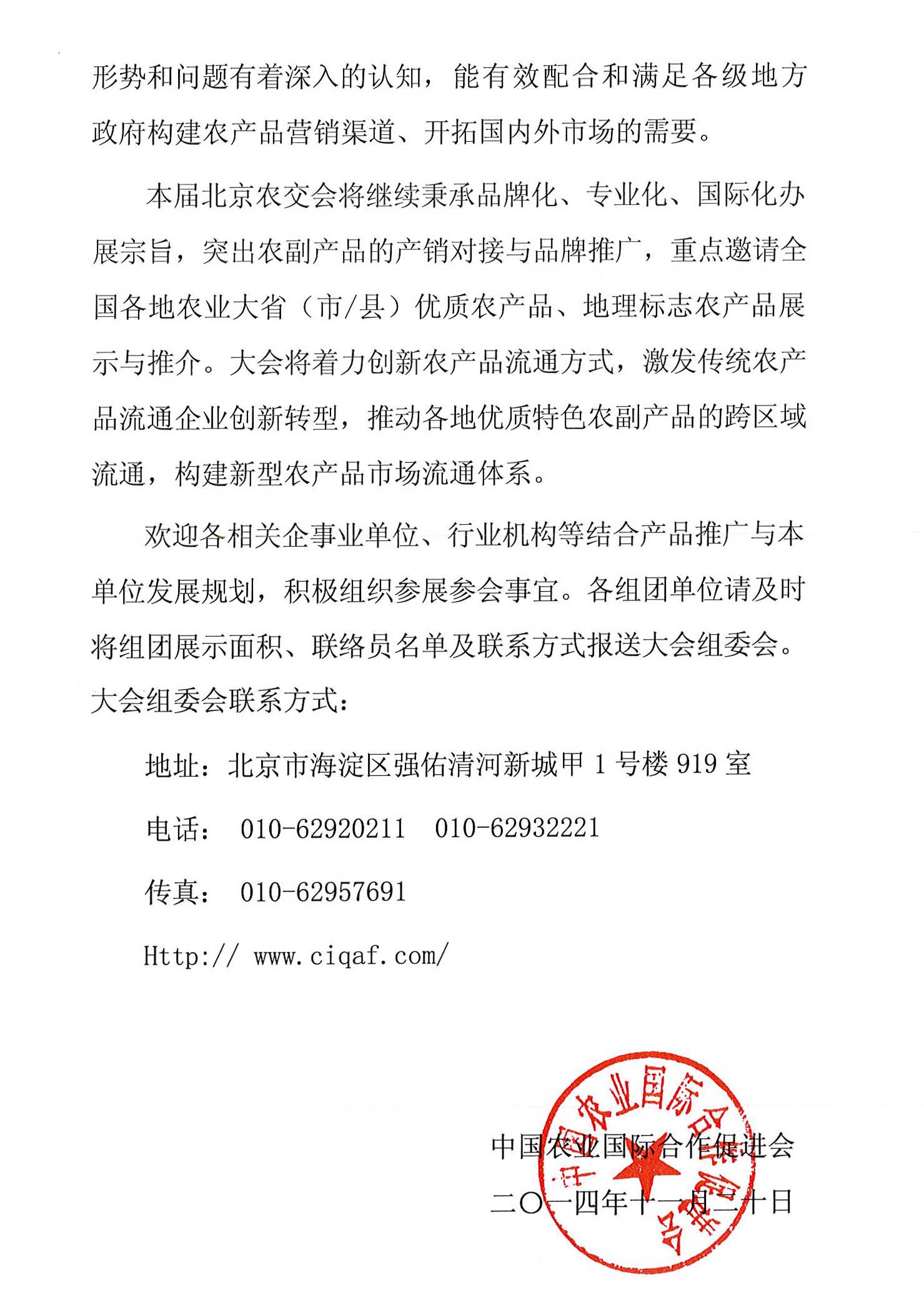 關(guān)于組織會員企業(yè)參加2015中國北京國際優(yōu)質(zhì)農(nóng)產(chǎn)品展示交易會暨各省市優(yōu)質(zhì)農(nóng)產(chǎn)品進(jìn)京推介會的通知