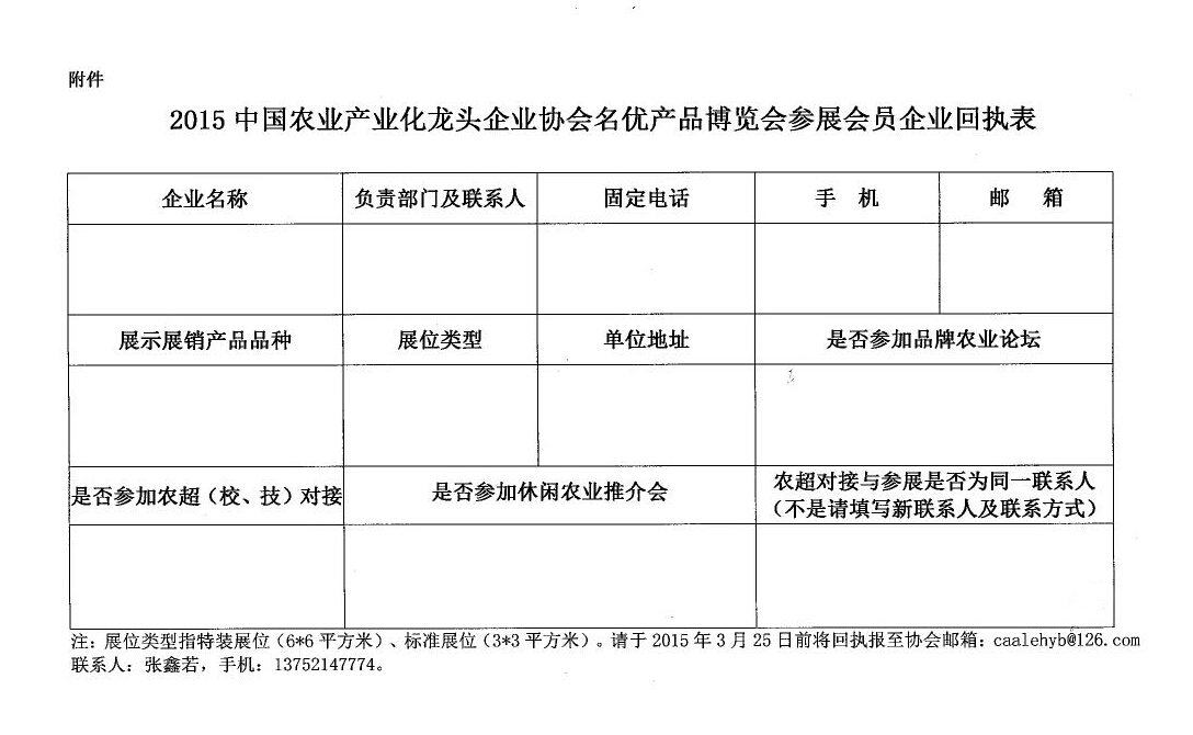 注:此次會(huì)議是針對中國農(nóng)業(yè)產(chǎn)業(yè)化龍頭企業(yè)協(xié)會(huì)(國家級(jí))會(huì)員單位提供免費(fèi)展位,其他非本協(xié)會(huì)(國家級(jí))會(huì)員須繳納一定費(fèi)用。