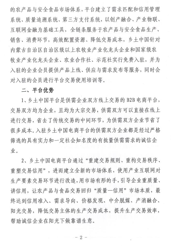 關于入駐鄉(xiāng)土中國首家安全食品產(chǎn)業(yè)電商平臺的通知