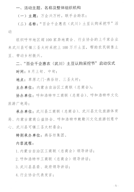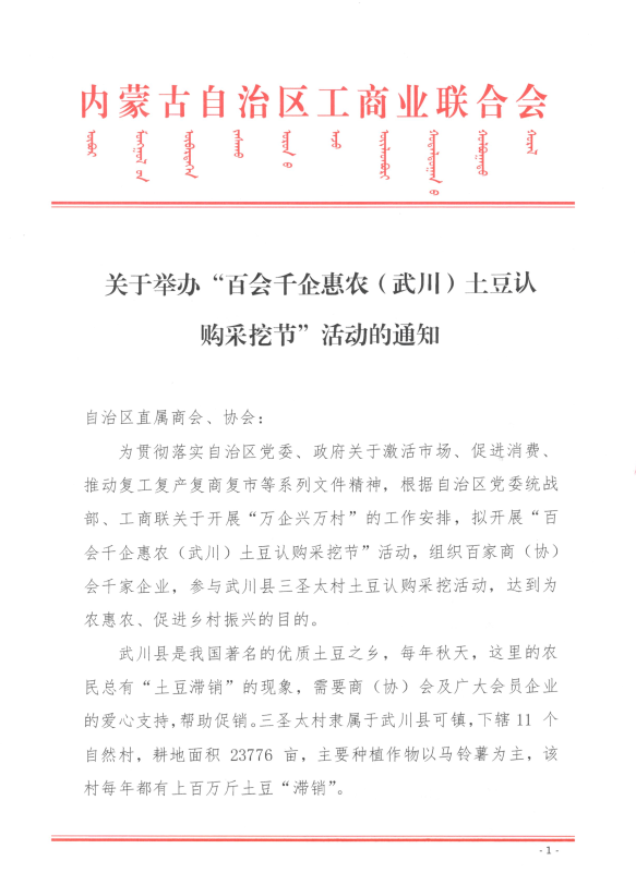 關(guān)于舉辦“百會千企惠農(nóng)(武川)土豆認(rèn)購采挖節(jié)”活動的通知