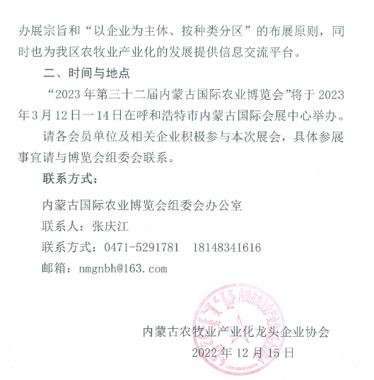 關(guān)于組織參加2023年第三十二屆內(nèi)蒙古國(guó)際農(nóng)業(yè)博覽會(huì)的通知
